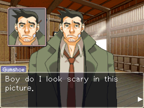 Desired CR: Friends! Whether in his own rage, or younger people for him to be like a dad/goofy uncle/big brother to. Also law enforcementy types for him to investigate with, and drinking buddies. Also rivals, especially of the ridiculous sort. Enemies to trip him up and attempt to pursue. Trolls and people who will tease him are also welcome. CR that is pure and fluffy, or madcap and goofy, or getting trapped in embarrassing situations, involves Gumshoe stumbling into dark secrets about someone he's befriended, or some combination! Most types of CR are welcome.